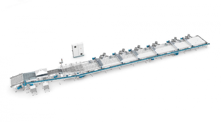 Високошвидкісна система дистрибуції первинного пакування призначена для прийому продукту з транспортера (після холодильного тунелю та металодетектора), його транспортування та розподілу по лініях первинного пакування.